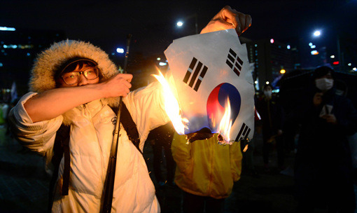 ▲정권 퇴진 운동으로 변질된 세월호 시위대