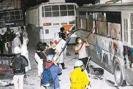 ▲경찰버스 71대를 파손하는 세월호 시위대 그들은 대한민국 국민이 아니다. 오로지 국가를 전복하고 청와대를 접수하고 싶어하는 강도들이고 외침의 적군들이다.