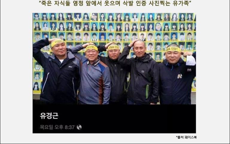 자식들의 영정앞에 웃으며 삭발인증샷 찍는 짐승보다 못한 세월호 유족들